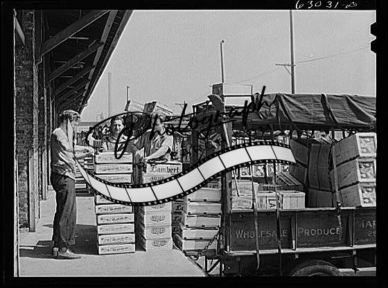 Title: Onions and potatoes at produce market, where commission merchants sell to retailers. Chicago, Illinois