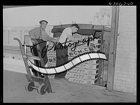 Title: Loading crates of fruit onto commission merchants' trucks. Fruit terminal, Chicago, Illinois