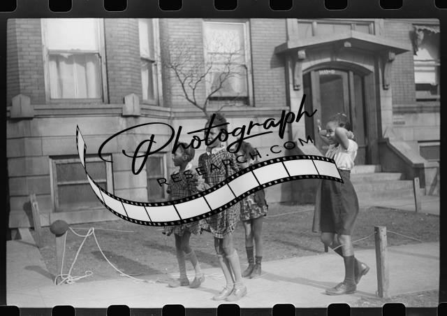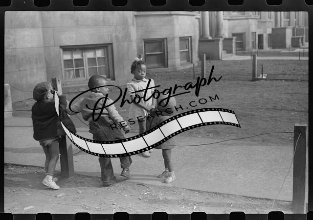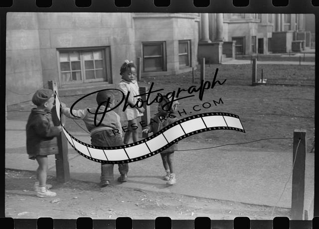 Title: Children in front of apartment buildings in one of the better neighborhoods in the Black Belt, Chicago, Illinois