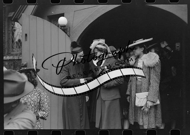 Title: Shaking hands with members of the congregation after Easter services at an Episcopal Church, South Side of Chicago, Illinois