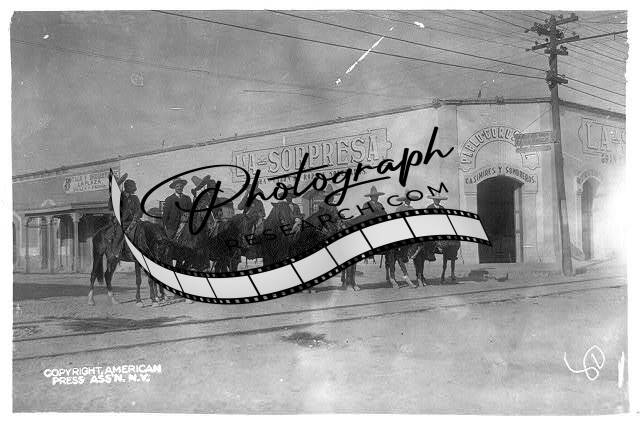Mexican rurales,Gómez Palacio,horseback riding,buildings,Durango,Mexico,c1910