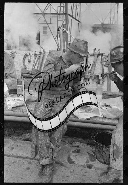 Oil worker eating lunch,Kilgore,Texas,TX,Farm Security Administration,FSA