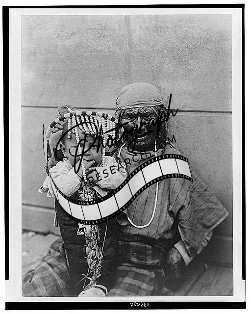 Periods of time,Elderly woman holding infant in cradleboard,c1902,Lily White