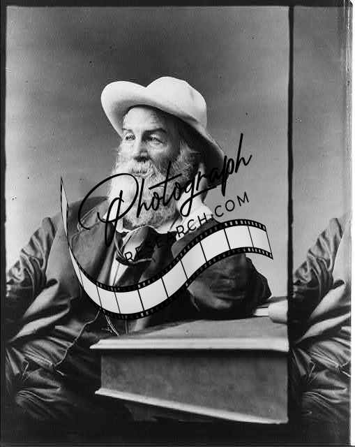 Walt Whitman,1819-1892,seated at small desk,left hand raised to neck,taken 1871