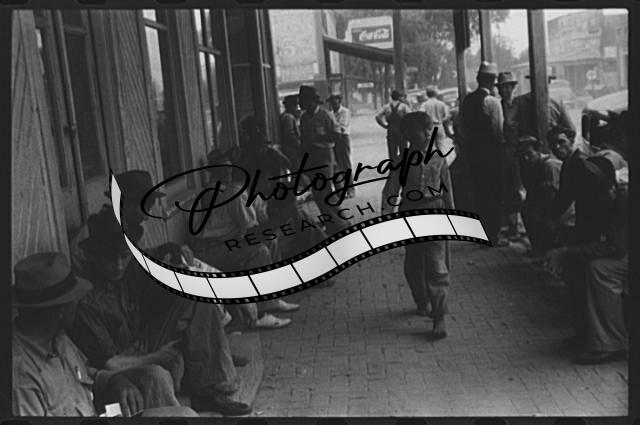Title: Workers, some of them unemployed, on the main street of Childersburg, Alabama