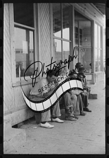 Title: Workers outside a store on the main street of Childersburg, Alabama