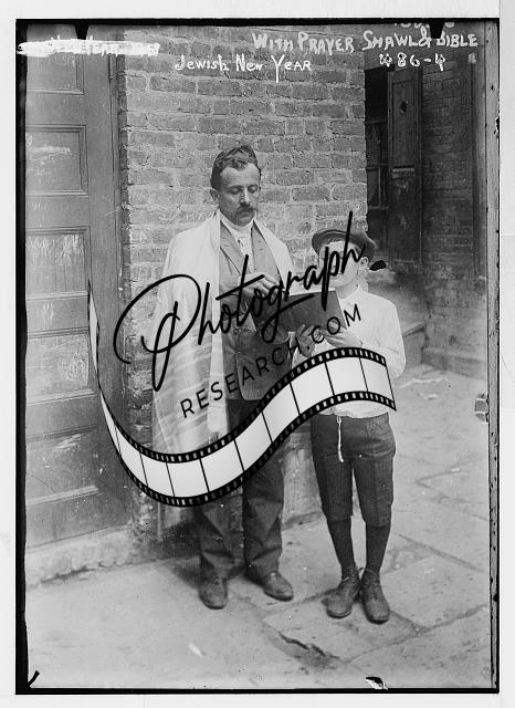 Jewish New Year - with prayer shawl & Bible,men,boy,outside