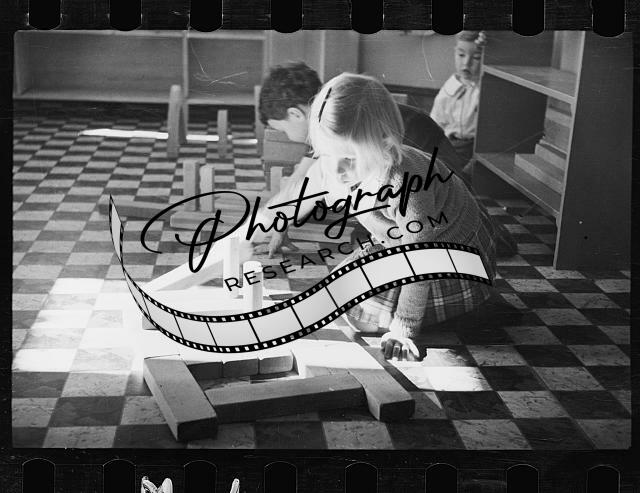 Children playing,floor,blocks,boys,girls,sunshine,students,1935