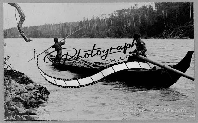 Indians poling up the Skeena River,British Columbia,Canada,1900-1930,Canoe