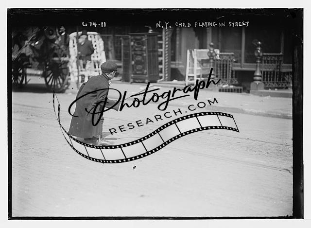 Children with stick playing in street,New York,little boy,NY,April 2,1909