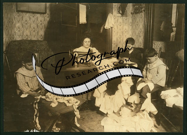 Making dresses for Campbell Kid Dolls in a dirty tenement,New York,Thompson St