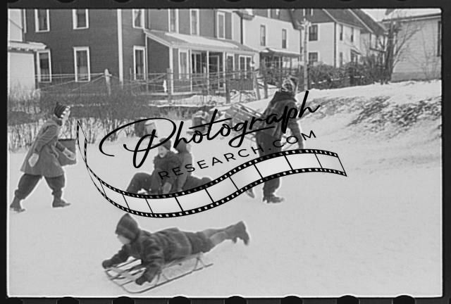 Children sledding,Jewett City,Connecticut,CT,Farm Security Administration,FSA,11
