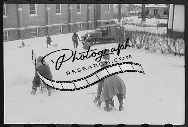 Children sledding,Jewett City,Connecticut,CT,Farm Security Administration,FSA,5