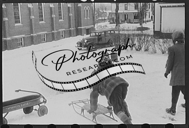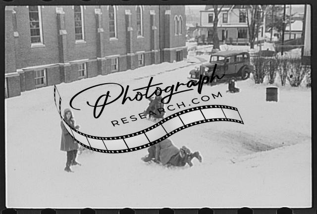 Children sledding,Jewett City,Connecticut,CT,Farm Security Administration,FSA,7