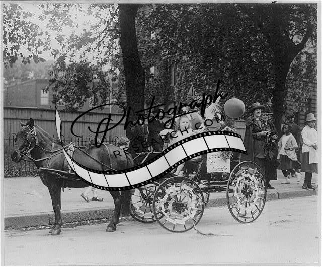 Animal parade in Washington,D.C.,May 13,1921,Girl,Decorated Pony Cart,balloons
