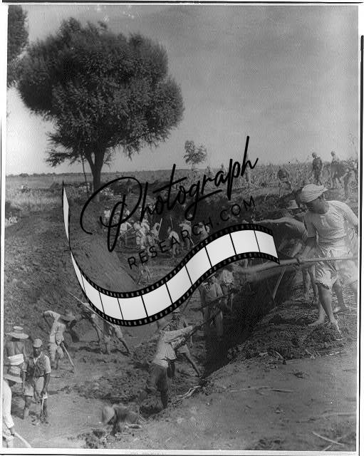 China at War,1937-1945,Soldiers & villagers digging tank trap near their village
