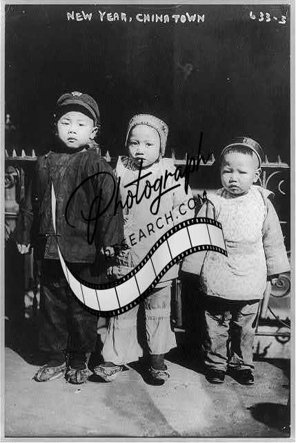 Chinatown,New York City,N.Y.C,three children posed,New Year's Day,1909