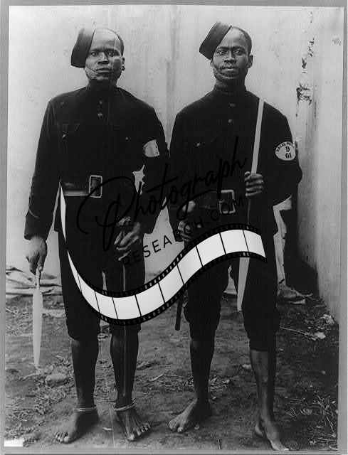 2 barefooted policemen,in uniform,Durban,Natal,South Africa,assegais,1890-1923