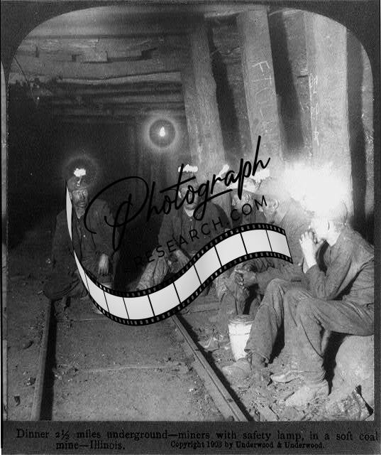 Dinner Underground,Miiners,Safety Lamp,Soft Coal Mine,Illinois,IL,c1903,Mining
