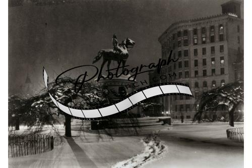 Statue,Major General George H Thomas,Thomas Circle,Washington,DC,snow,night,1911