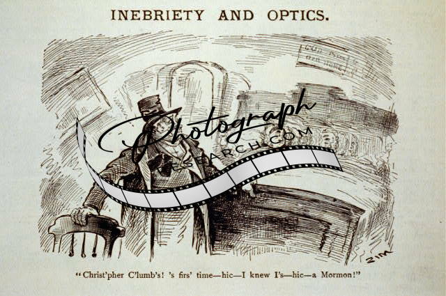 Inebriety,optics,1885,drunk man,Mormon,a number of women in his bed,photograph