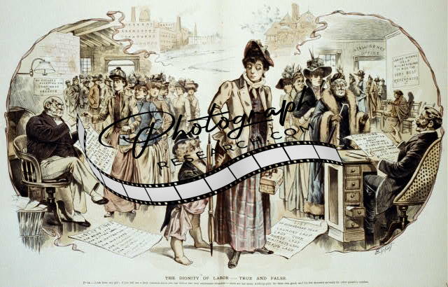 The dignity of labor - true,false,1891,Caricature,women in employment lines