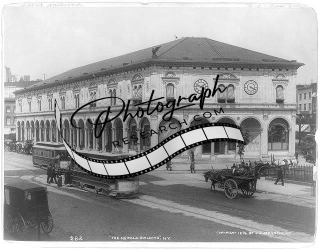 The Hearld Building,New York City,N.Y.,exterior,carts & trolleys in street,c1894