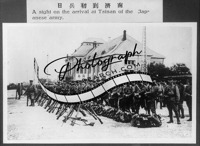 Sight,arrival,Tsinan,Japanese army,military personnel,occupation,China,1928