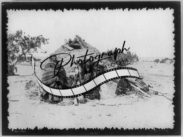 Home,dwellings,women,children,adobe hut,Navajo Indian,North America,Nativs,c1914