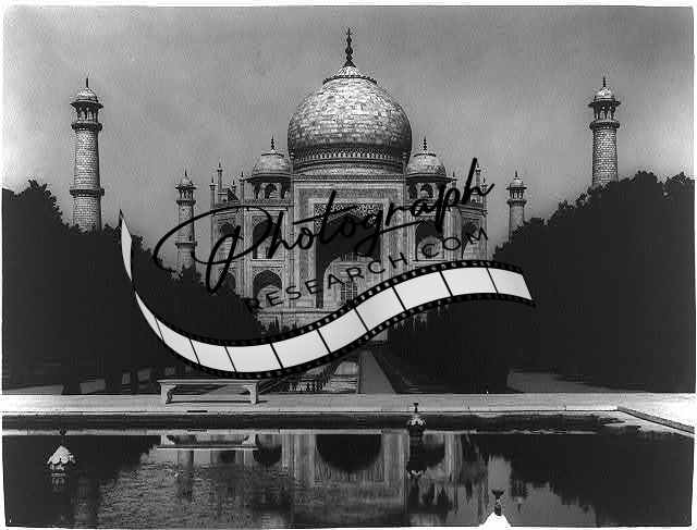 Taj Mahal,c1920,white marble mausoleum,Agra,Uttar Pradesh,India,bench,water