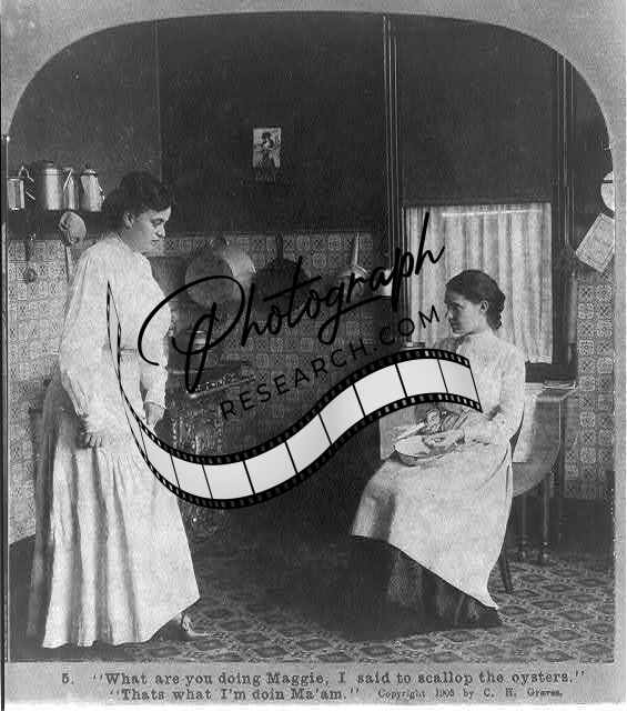 What are you doing Maggie,I said to scallop the oysters,Women,Kitchen,c1905
