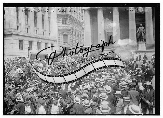 Chorus girls selling tickets,Wall Street,female preformers,crowd,New York 1