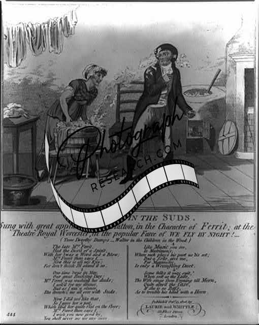 Mr. Ferrit in the suds,British Cartoon,1806,Young Woman,Wash Tub,Hessian Boots