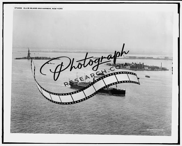 Ellis Island,immigration stations,boats,ships,water,Harbor,New York,NY,c1900