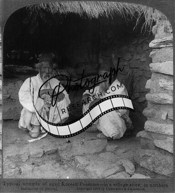 Typical Attitude of Aged Korean Peasants,Village Store,Suburbs,Seoul,Korea,c1904