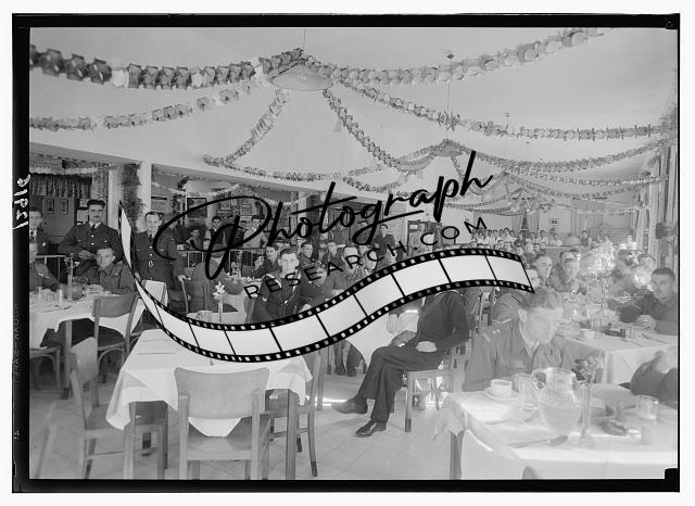 Christmas decorations in 'Y' hostel dining hall,December 1943,Jerusalem,Israel
