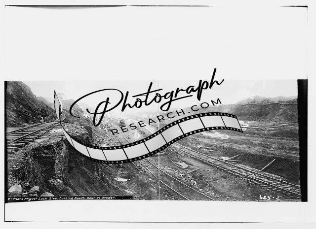 Pedro Miguel Lock site,excavations,looking south down to grade,Panama,RR Tracks