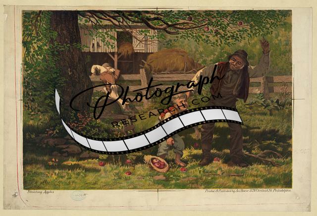 Stealing Apples,c1877,Little Boy,Older Man,Dog,Theft,Theives,Tree,Country Life