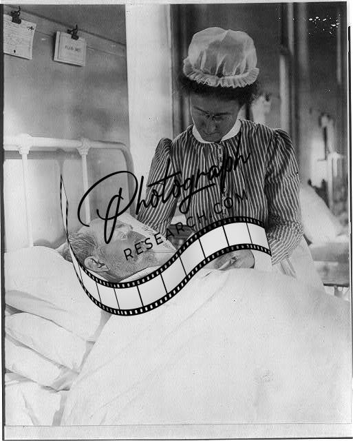 Nurse caring for elderly patient,c1906,Nursing