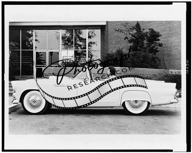 Woman,new Ford Thunderbird,Motor Company products,automobiles,convertible,1955