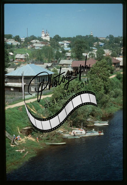 Left bank of Sukhona River,with wooden houses,Tot'ma,Russia,William Brumfield
