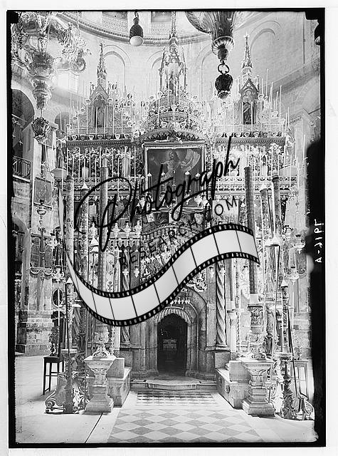 Title: Church of the Holy Sepulchre. Interior of church showing Stone of Unction