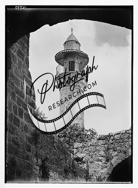 Muezzin calling out hour of prayer from minaret,Matson Photo Service,1940-1946