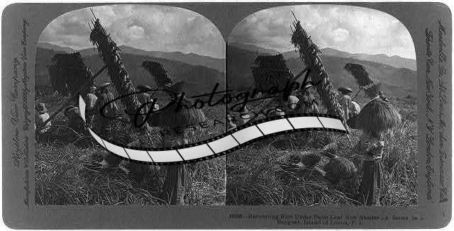 Reproduction,Harvesting Rice under Palm Leaf,Benguet,Island of Luzon,Philippines