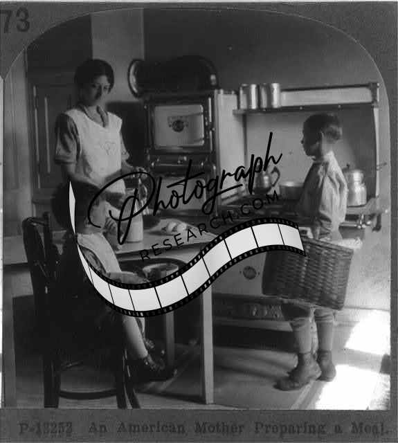 An American Mother Preparing a Meal,Kitchen,Children,High Chair,c1926,Eating
