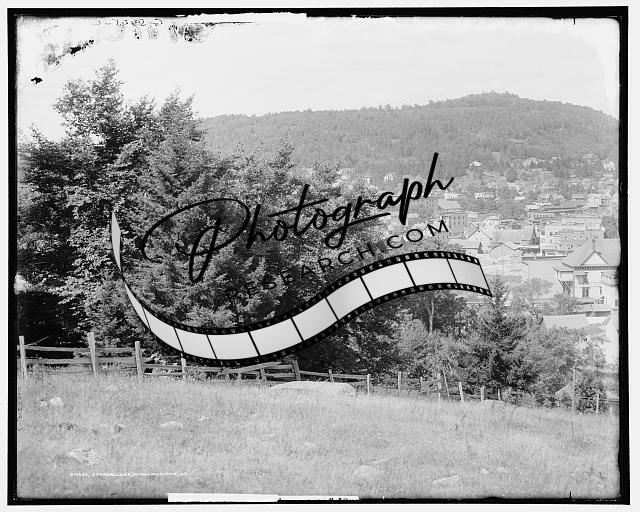 Saranac Lake,buildings,fences,fields,Adirondack Mountains,New York,NY,c1909