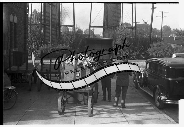 Meeting casket at railroad station,Shelbyville,Indiana,IN,October 1938,FSA
