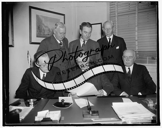 Title: CIO Head with labor candidate for mayor of Detroit. Washington, D.C., Oct. 9. Patrick H. O'Brien, Labor's non-partisan league candidate for Mayor of Detroit discussing his campaign plans today with John L. Lewis, CIO Head. After talking with O'Brien, Lews said he considered 'the chances very good for success' in the general elections. 10/9/37