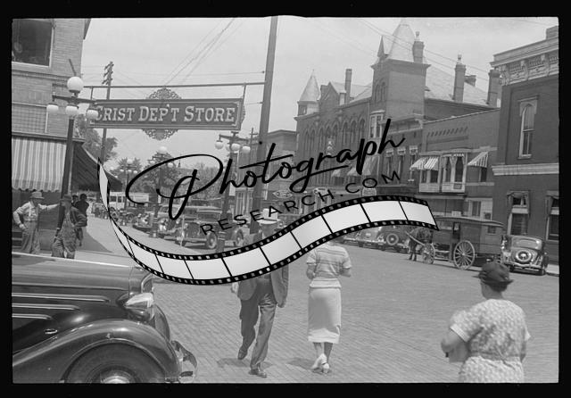 General caption for this series of images: Circleville, county seat of Pickaway County. Average small Ohio city, depending upon surrounding rich farmlands for its livelihood. Because of its non-industrial surroundings, retains much of old-time flavor. Outstanding industries: Eshelman's Feed Mill. Employs 150-200 men the year 'round. Pay averages about eighty-five cents an hour. Container Corporation of America makes paper out of straw, can absorb by-product of all neighboring farms. In addition, a number of canneries and feed mills. During depression many farms of the district were foreclosed. People who lost homes naturally gravitated toward the town. A town of its character is unable to house new influx of population. Consequently there sprang up around it an extensive Hooverville. Circleville got its name through having been built in a circle as a better protection against the Indians. For further information Chamber of Commerce, Circleville. Circleville is the home of Ted Lewis.