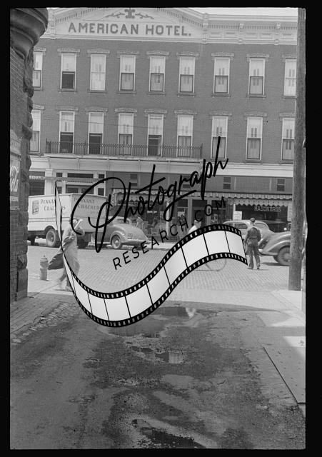 General caption for this series of images: Circleville, county seat of Pickaway County. Average small Ohio city, depending upon surrounding rich farmlands for its livelihood. Because of its non-industrial surroundings, retains much of old-time flavor. Outstanding industries: Eshelman's Feed Mill. Employs 150-200 men the year 'round. Pay averages about eighty-five cents an hour. Container Corporation of America makes paper out of straw, can absorb by-product of all neighboring farms. In addition, a number of canneries and feed mills. During depression many farms of the district were foreclosed. People who lost homes naturally gravitated toward the town. A town of its character is unable to house new influx of population. Consequently there sprang up around it an extensive Hooverville. Circleville got its name through having been built in a circle as a better protection against the Indians. For further information Chamber of Commerce, Circleville. Circleville is the home of Ted Lewis.